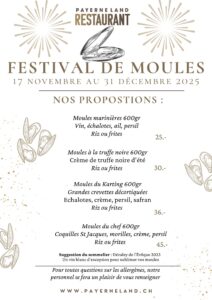 Le Restaurant Payerneland vous invite à son Festival des Moules, un rendez-vous gourmand à ne pas manquer !