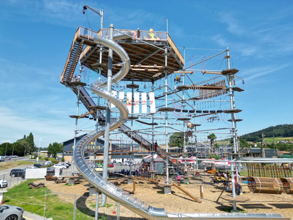 S’élevant à 20 mètres, la Payerneland Tower vous invite à relever cinq étages d’aventures et de défis acrobatiques.